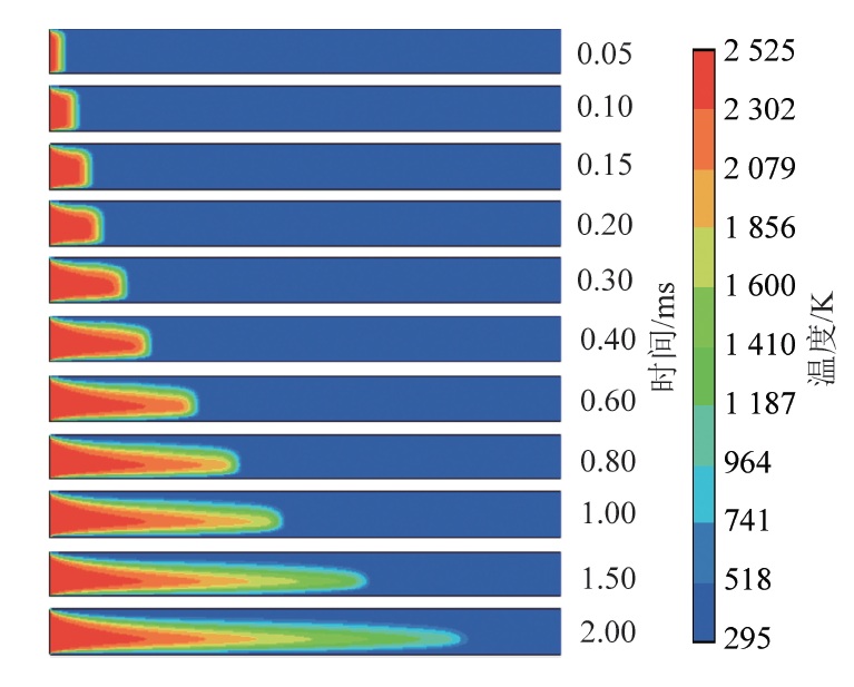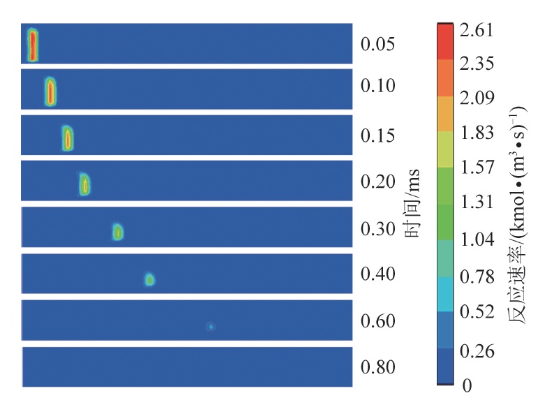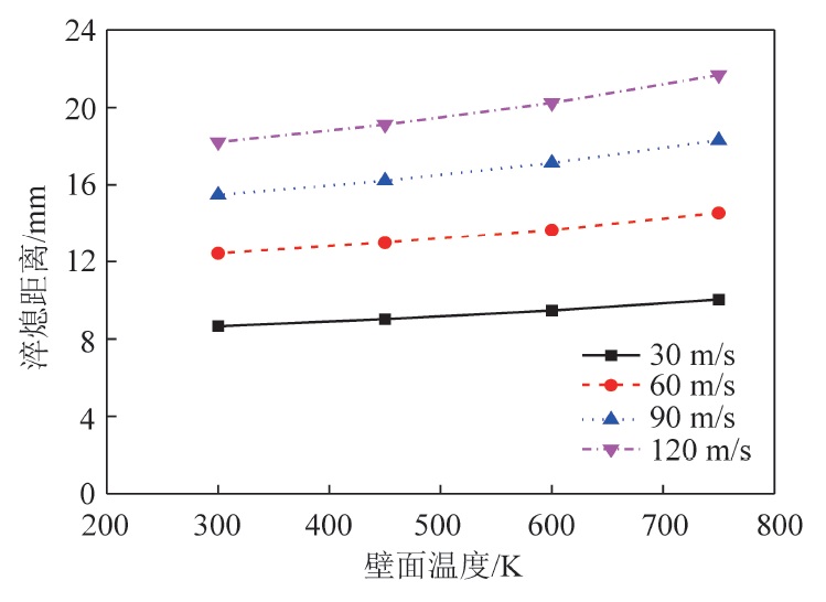 摘要: 研究瓦斯爆燃火焰淬熄规律是开发防爆抑爆技术的基础。为有效抑制井下爆燃事故,探究瓦斯爆燃火焰在微细孔道内部的发展规律,以波纹型阻火器为研究对象,采用大涡模拟耦合有限速率/涡耗散模型的方法对波纹型阻火器阻火单元内甲烷/空气预混火焰的淬熄过程进行三维模拟。研究基于阻火单元内部温度和化学反应速率的瞬态特征,分析了火焰淬熄机理以及入口火焰速度和壁面温度对淬熄过程的影响。结果表明,火焰在波纹型阻火器内的传播受入口处火焰和内部燃烧化学反应的共同影响;火焰速度和内部燃烧化学反应速率都随着火焰传播距离的增长逐渐降低,但内部燃烧化学反应对火焰传播的影响逐渐占据主导。阻火器壁面对燃烧化学反应有重要影响,减小燃烧化学反应区域有利于火焰的淬熄。火焰速度和燃烧化学反应速率间存在相互促进关系。入口火焰速度越大,淬熄距离越远;随着入口火焰速度增大,影响逐渐减小,火焰淬熄距离增速减小。壁面温度的改变对化学反应速率影响较小;提高壁面温度将阻碍壁面散热,使熄灭层厚度减小。壁面温度越高,火焰淬熄距离越远;入口火焰速度越大,淬熄距离增长越明显。当壁面温度足够大时,火焰将穿过阻火器,造成阻火器失效。Abstract: The research on gas deflagration flame quenching is the basis of explosion-proof and explosion suppression technology. Large eddy simulation (LES) coupled with Finite Rate/EDM was used for three-dimensional simulation on the quenching process of methane air premixed flame in the Flame-Resistant element of crimped ribbon flame arrester in order to suppress gas deflagration effectively and reveal the rule of gas deflagration flame development in the micro channel. Based on the transient characteristics of temperature and reaction rate, the mechanism of flame quenching and the effects of inlet flame velocity and wall temperature were analyzed. It has been found that the flame propagation is mainly affected by the entrance flame and the internal combustion reaction. The flame velocity and internal combustion reaction rate decrease with the development of flame. At the later stage, the influence of internal combustion reaction on flame propagation is dominant. The wall of flame arrester has an important effect on the reaction rate. Reducing the combustion reaction area is conducive to the quenching of flame. There is a positive feedback relationship between flame velocity and combustion chemical reaction rate. The quenching distance will extend with the increase of inlet flame velocity, and the growth rate will slow down. The change of wall temperature has little effect on the chemical reaction rate. Increasing wall temperature will hinder the wall heat dissipation and extend the quenching distance. The growth rate of quenching distance will be enhanced with the increase of inlet flame velocity. The flame will pass through the flame arrester when the wall temperature is high enough, resulting in the failure of the flame arrester.