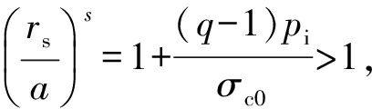 其中rs为黏聚力降为0的径向位置。可见,在冲击地压发生时,巷道壁附近a<r<rs区域的黏聚力已降为0,煤体内裂隙丛集(类似于散体结构),当冲击地压发生时将会向巷道内部空间迅速抛出。