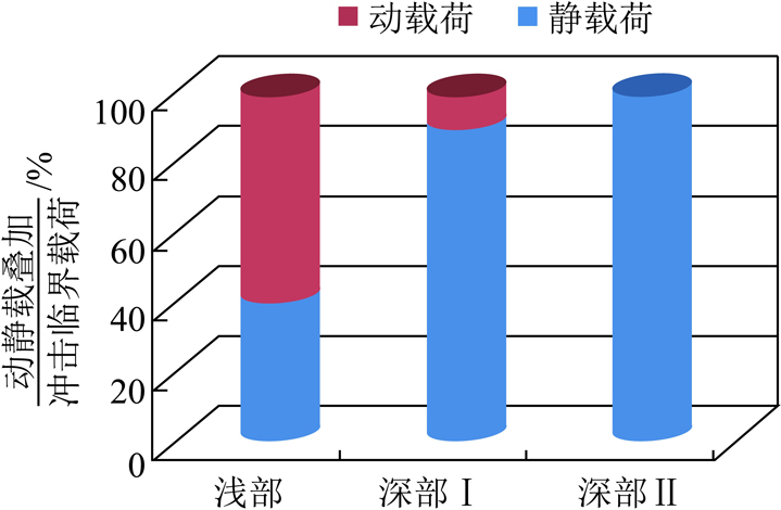 如图12所示,浅部矿井因埋深浅,重应力等基础静载荷相对不足,主要存在一种冲击形式,即动、静载叠加冲击型;深部矿井因埋深大,重应力、水平应力等基础静载荷相对充足,达到冲击临界值对载荷增量要求较低,主要存在两种冲击形式:微动载冲击型、纯静载冲击型。因此,煤矿冲击地压防控,静载荷主导,兼顾动载荷应开展“分源”防治。