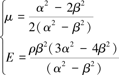 式中,α与β分别为P波和S波的传播速度,km/s;ρ为已知岩体的密度,kg/m3。