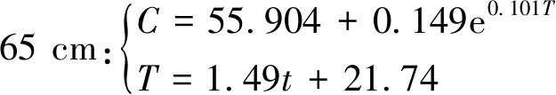 将式(8),(9),(10)代入式(7),可得到65,105,125 cm处氡析出与发火时间的关系: