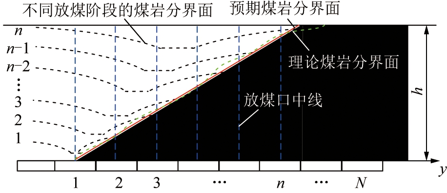 多放煤口放煤过程中,工作面第1个有n个放煤口通过一定的放煤方式,形成一个近似倾斜直线的煤岩分界面的放煤过程称为多放煤口放煤的起始放煤过程,起始放煤是整个多放煤口放煤过程中最关键的部分,起始放煤中形成的煤岩界面将直接影响到后续的中间放煤和末端放煤过程。为了能够在起始放煤结束后形成近似倾斜直线的煤岩分界面,需要对起始放煤中各放煤口之间的放煤过程进行协调控制。