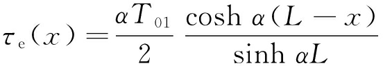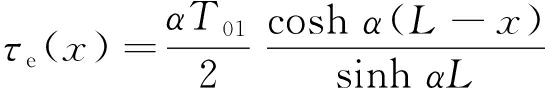 根据式(5)和(7)可得到Ⅰ阶段相应的剪应力τe(x)和位移ue(x)关系式
