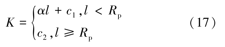 在实际开采过程中,靠近工作面的煤体较为破碎,其刚度较低,在塑性区范围内呈现逐渐增大的趋势;在弹性区范围内基本保持不变(图2):