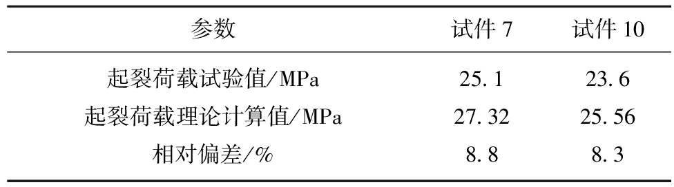 参数试件7试件10起裂荷载试验值/MPa25.123.6起裂荷载理论计算值/MPa27.3225.56相对偏差/%8.88.3