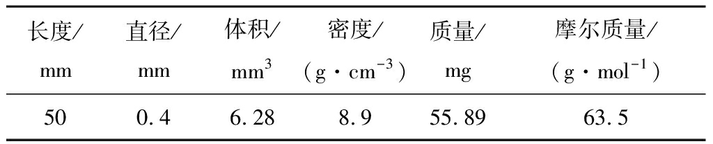 表1 实验中铜丝参数