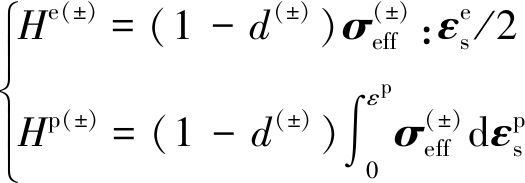 和Hp(±)分别为拉、剪应力引起的弹性和塑性Helmholtz 自由能,其表达式分别为
