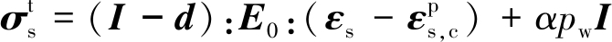 为总应力矢量;I为单位矩阵;d为四阶损伤张量;E0 为实体单元的刚度矩阵;εs 和