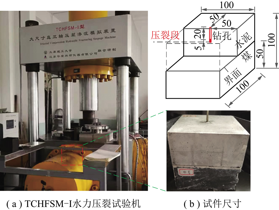 Fig.6 Hydraulic fracturing test machine and specimen size