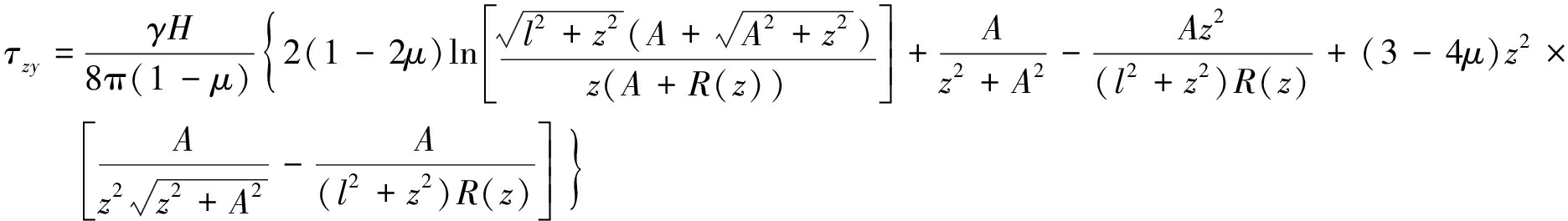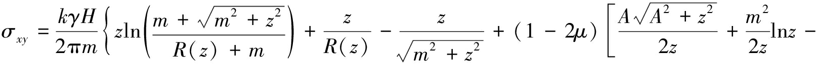 然后,可按照式(9)的方法求解三角形分布支承压力作用下点N的应力(σij)Δ1。同理,可得(σij)Δ2。这样得到支承压力I区作用下底板岩体中N点的应力(σij)I: