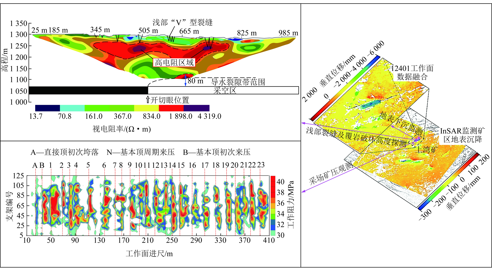 然而,从时间同步性、监测连续性及精确性、数据融合性等方面考虑,应采取多手段互相补充,协同测量,才能精准解决实际问题。与此同时,西部生态损伤区地质环境与沉陷特征具有复杂性、动态性和特殊性,发展空天地多尺度联合监测技术迫在眉睫。笔者选择神东矿区上湾煤矿12401工作面为工程背景,构建“空天地”一体化监测体系对覆岩损伤、地表连续变形与非连续变形进行联合监测,实现采动过程中覆岩运移-地表沉降-地裂缝发育的时空动态监测,为高强度开采损伤控制提供坚实的技术基础。