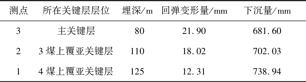 由此,归纳出3个测点所在关键层的回弹变形量,见表1。